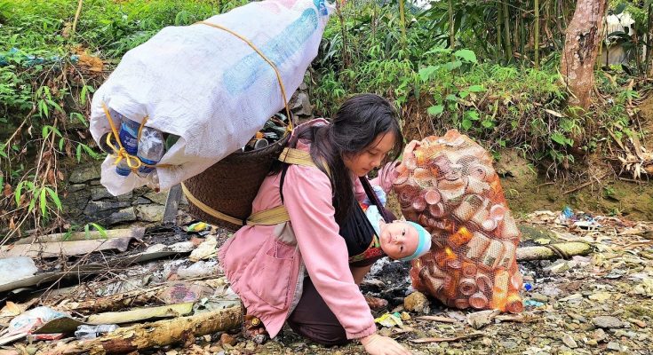 Homeless single mother earns a living by collecting scrap materials – Girl Survival Build